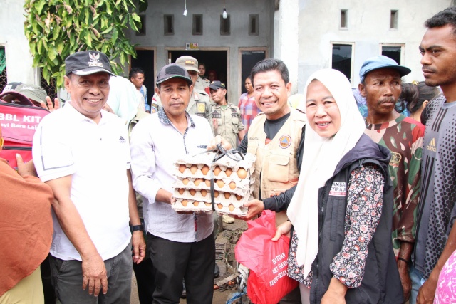 Memberikan dukungan moril kepada masyarakat yang terdampak banjir di kedua lokasi dimaksud Bupati Dompu, Bambang Firdaus, SE didampingi Ketua DPRD, Ir. Muttakun, Kapolres, AKBP Sodikin Fahrojin Nur, S.IK,